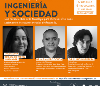 En este contexto y con la idea de comenzar a relevar estas temáticas, se realizó el conversatorio “Ingeniería y sociedad: una mirada crítica de la tecnología para el análisis de la crisis sistémica en los actuales modelos de desarrollo”, que contó con la participación de la Dra. María Teresa Santander, directora y moderadora en esta instancia, junto al Dr. Alejandro Ochoa, académico e Ingeniero de Sistemas y el Dr. Claudio Herrera, Antropólogo e investigador asociado del Centro de Integración de Ingeniería y Sociedad, ambos de la Universidad Austral.